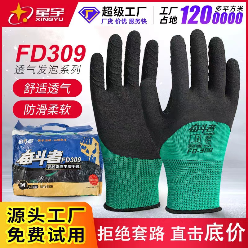 临沂平邑线手套防滑透气挂胶星宇劳保手套厂家乳胶发泡工作劳动