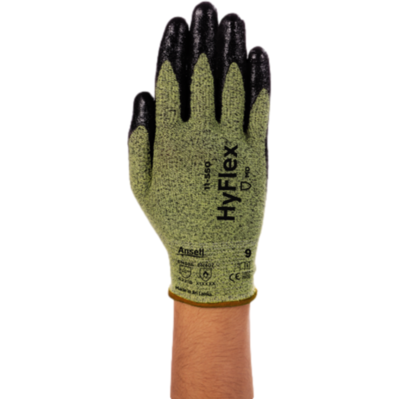 增强防护性能: HyFlex® 11-550工业手套采用INTERCEPT™防割纤维,可提供基础防割保护;