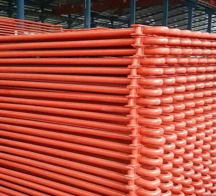 钢管式省煤器不受压力限制,可以用作沸腾式,一般由外径为32~51毫米的碳素钢管制成。有时在管外加鳍片和肋片,以改善传热效果。钢管式省煤器由水平布置的并联弯头管子(习称蛇形管)组成。