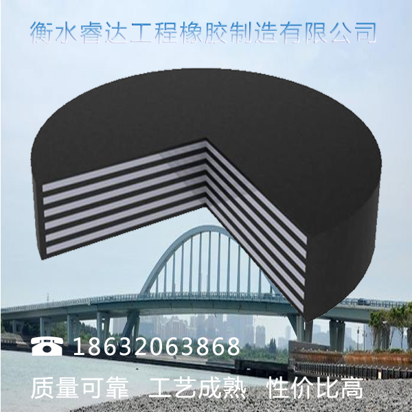 本产品由多层高弹性的橡胶为主体材料,与薄钢板镶嵌、粘合、硫化而成。该产品有足够的竖向刚度以承受垂直荷载,且能将上部构造的压力可靠地传递给墩迨台;有良好的弹性以适应梁端的转动;有较大的剪切变形以满足上部构造的水平位移。橡胶以其独特的功能从根本上改善了桥梁支座的性能。