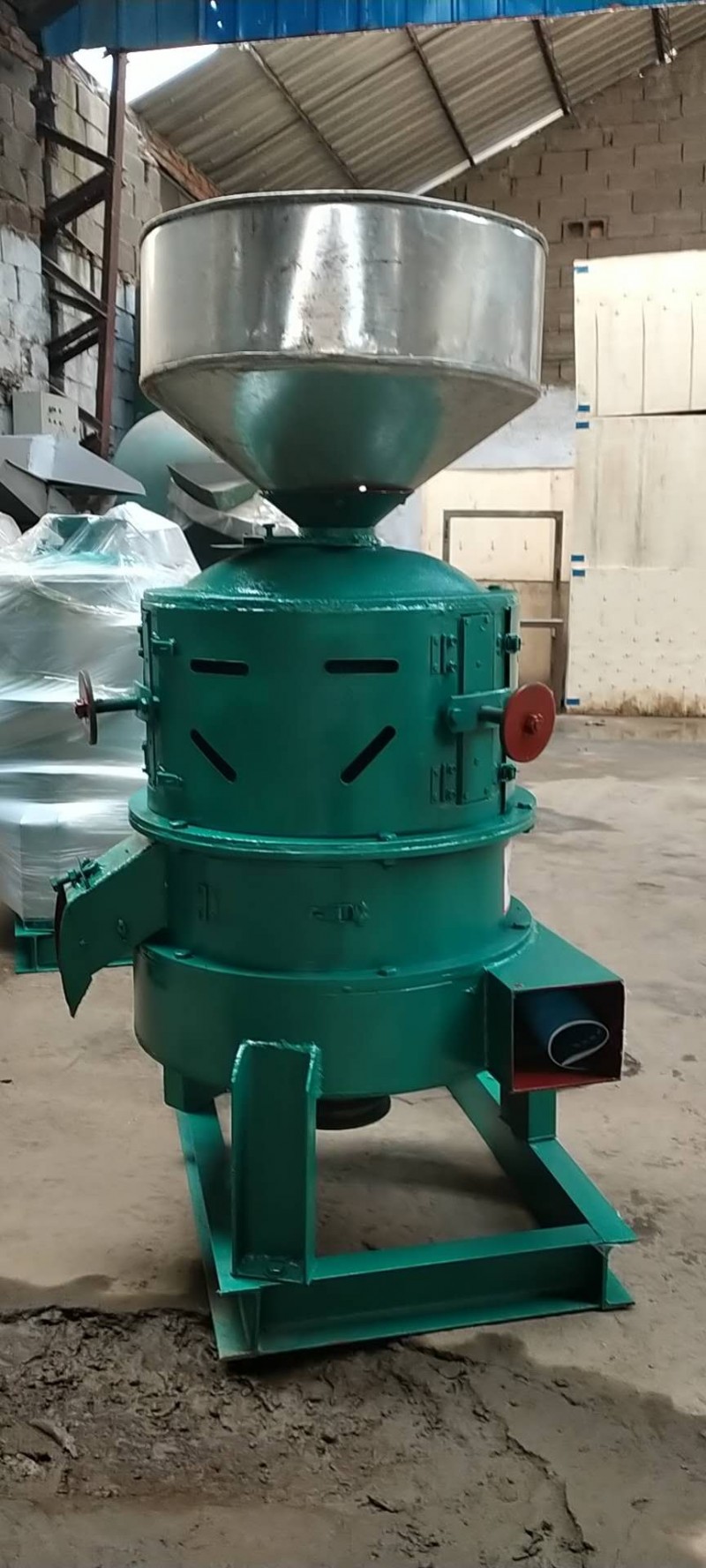 机械结构,圆形,转动部分砂轮式,底部代风机,圆周有筛片,还带粮食阻刀。加工原理:粮食进过进料口进入内腔,在电机带动主轴砂轮高速旋转,粮食和粮食互相摩擦,粮食和筛片互相摩擦,粮食和砂轮的互相摩擦,粮食在机械内腔高速旋转,终把皮去掉。经过筛片过滤,糠从筛片孔吹出来,吸入风机,排除机械外,进入布袋。同时完成米、糠、碎米的分离。但被加工物的含水量与含杂量会直接影响米质及机器功效、负荷,用于其他作用则会导致与机器