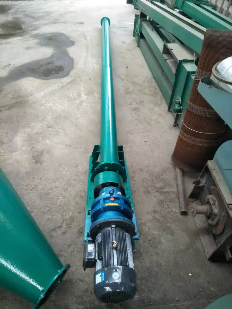 螺旋输送机是一种利用电机带动螺旋回转,推移物料以实现输送目的的机械。它能水平、倾斜或垂直输送,具有结构简单、横截面积小、密封性好、操作方便、维修容易、便于封闭运输等优点。螺旋输送机在输送形式上分为有轴螺旋输送机和无轴螺旋输送机两种,在外型上分为U型螺旋输送机和管式螺旋输送机。有轴螺旋输送机适用于无粘性的干粉物料和小颗粒物料.(例如:水泥、粉煤灰、石灰、粮等)而无轴螺旋输送机适合输送机由粘性的和易缠绕的物料。(例如:污泥、生物质、垃圾等)螺旋输送机的工作原理是旋转的螺旋叶片将物料推移而进行螺旋输送机输送,使物料不与螺旋输送机叶片一起旋转的力是物料自身重量和螺旋输送机机壳对物料的摩擦阻力。螺旋输送机旋转轴上焊的螺旋叶片,叶片的面型根据输送物料的不同有实体面型、带式面型、叶片面型等型式。螺旋输送机的螺旋轴在物料运动方向的终端有止推轴承以随物料给螺旋的轴向反力,在机长较长时,应加中间吊挂轴承。