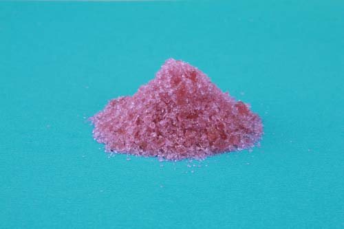 外观性状:粉红色结晶体,易溶于水和乙醇,有潮解性,密闭保存。