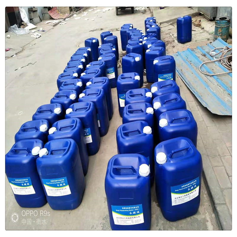 混凝土内部的碱含量是表面的360倍。DPS永凝液能渗透到混凝土内部与碱发生化学反应,渗透深度是2厘米左右。它不是粘贴在混凝土的表面,而是成为混凝土的一部分。相比之下,其他用于处理表面的防水剂,会和混凝土表面的水分起反应,通风后会逐渐老化、很快脱落。涂抹了市场上其他的防水剂的表面,由于物理腐蚀,防水剂易脱落,致使混凝土裸露。而DPS永凝液与混凝土内部的碱粒,不易腐蚀和老化,能使混凝土长久防水、防腐蚀、耐老化并起到加固作用。