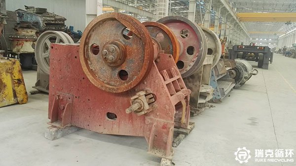 设备进行出售工作,在出售过程中,由我区域销售得知并与其联系,到现在进行实地考察设备后,经商议决定对其进行回收,设备回厂后,对设备进行拆解,并对其各个部分进行逐一检测,发现设备的动颚出有较轻微磨损,设备表面有较轻微磨损,通过对该部分维修,经过试机设备已能够正常运行,再对其表面进行喷漆工作,即可对外进行出售。