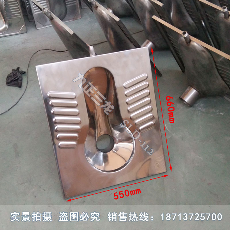 火车用蹲便器分为两种,一是普通火车用,二是动车专用,普通火车用是采用304不锈钢通过油压机压铸成盆,板,再通过焊接成形,动车专用是一体冲压成形并做反水弯处理,效果更好.