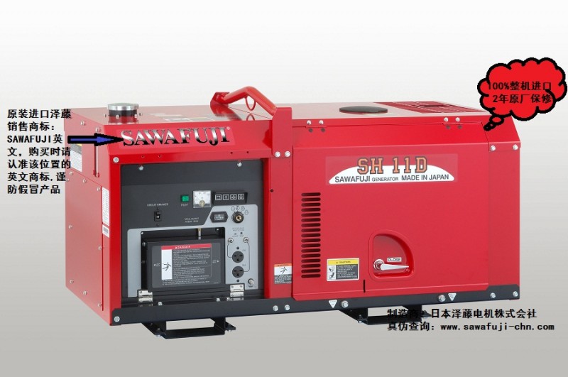 友情提醒:原装日本泽藤本田汽油发电机组在中国销售的英文商标为:SAWAFUJI商标,因近期发现假冒日本泽藤本田机组市场比较严重,为了你的合法利益购买机组时请认准日本原厂英文商标“SAWAFUJI”,或者登陆日本泽藤网站http://www.sawafuji-chn.com 输入机组序列号码查询机组真伪,避免假冒产品