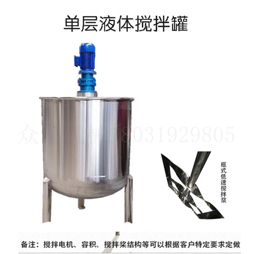 该结构由不锈钢搅拌罐,搅拌罐盖、搅拌器,支撑、传动装置、轴封装置等组成,也可根据工艺要求配置加热装置或冷却装置。