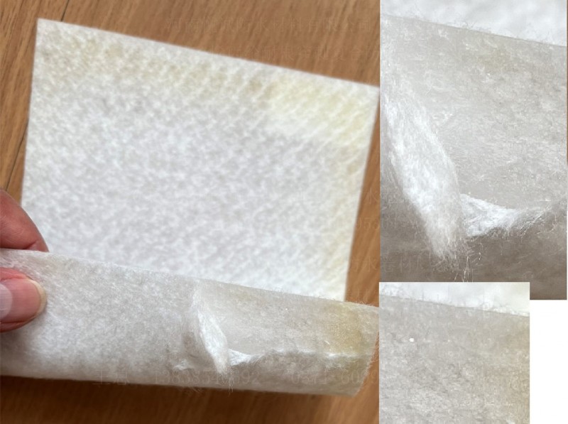 卷材上下两表粗糙,无纺布纤维呈无规则交叉结构,形成立体网孔状,多种粘结剂与其粘结均可达到较好效果。与水泥基层粘结时,可采用水泥粘接剂粘结。水泥粘结剂可直接进入防水卷材表面的网孔之中,随水泥固化为一体,故粘结牢固,永久性强。