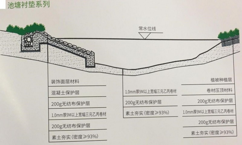 适用于建筑屋面、地下室的防水施工。 还可以应用于市政、园林景观、高尔夫球场、工厂、灌溉养殖、消防、污水、人工湖、河道、池塘、垃圾填埋场、湿地公园等。尤其在素土工程上使用该防水材料性能更优。