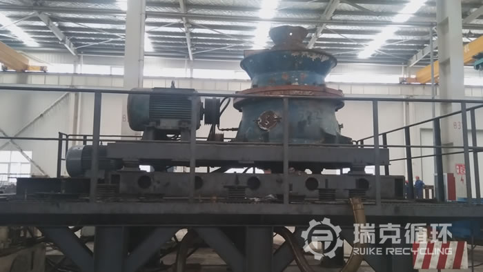 该台H-3000圆锥破碎机是我公司山东某地回收的,回收之前一直从事花岗岩的破碎工作,由于该企业有其它发展设备转让给我公司。我公司技术人员在现场对该设备进行了检查,主要零部件保存的还比较完整,设备运回公司以后,对该设备进行了拆机检查,发现动锥完好,主轴没有磨损,衬板有磨损现象,其它零部件基本保存的比较完成,根据实际检查情况作出了维修方案,完成维修之后重新进行安装,并且在我公司试机平台上进行了数个小时的试机,试机中该设备性能十分稳定,没有出现不良现象。