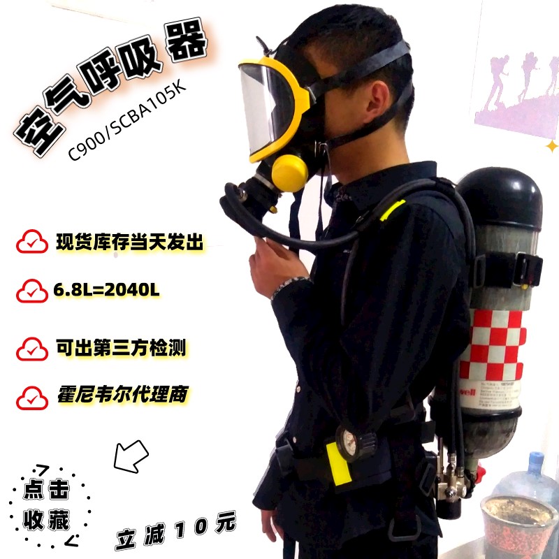 自给式正压空气呼吸器主要技术参数:工作压力:30Mpa供气流量:>450L/min呼吸阻力:<870Pa气瓶水容积:6.8L使用时间:单瓶62分钟、双瓶124分/钟(按气量30L/min计算)整机重量:单瓶9.3kg、双瓶14.5kg背带、面罩燃烧特性:阻燃,符合欧洲EN136/10标准中抗火焰要求。