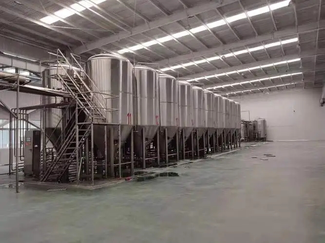 史密力维大型啤酒生产线设备主要包括粉碎系统、糖化系统、发酵系统、制冷系统、清洗系统、售酒系统、控制系统及辅助系统。采用的的啤酒生产技术设计,可选用紫铜和不锈钢材料加工制作,整套设备之间的管道阀门均采用卫生级