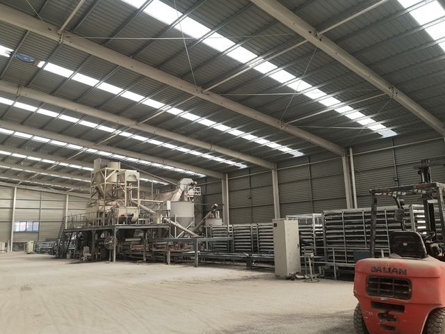 8、自动清洗模板:生产线配有自动清洗模板系统,产品下线后模板背面即清洁如新。产品脱模后,用专用的模板自动清洗设备再次对模板进行双面清洗,以保证板材产品的厚度与精度。