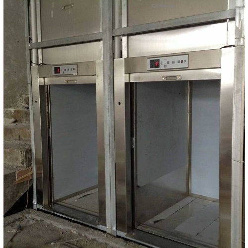 货梯做成轿厢式,并且轿厢使用不锈钢板外封的,称作不锈钢轿厢货梯。