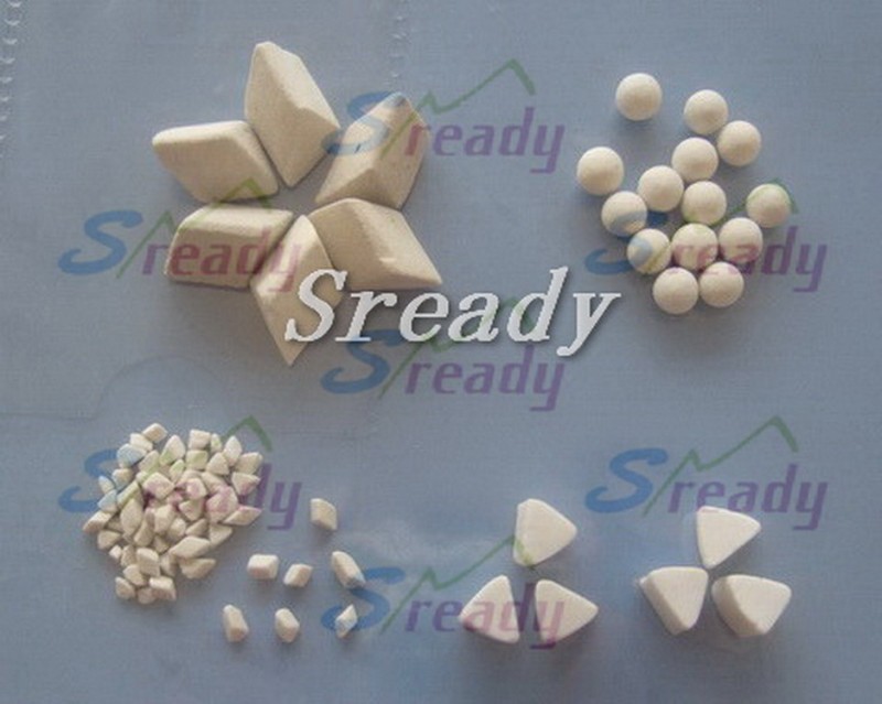 3、有正三角形研磨石,斜三角形研磨石,斜圆柱形研磨石,球形研磨石,椭圆柱型研磨石、菱形研磨石、以及各种不规则研磨石。