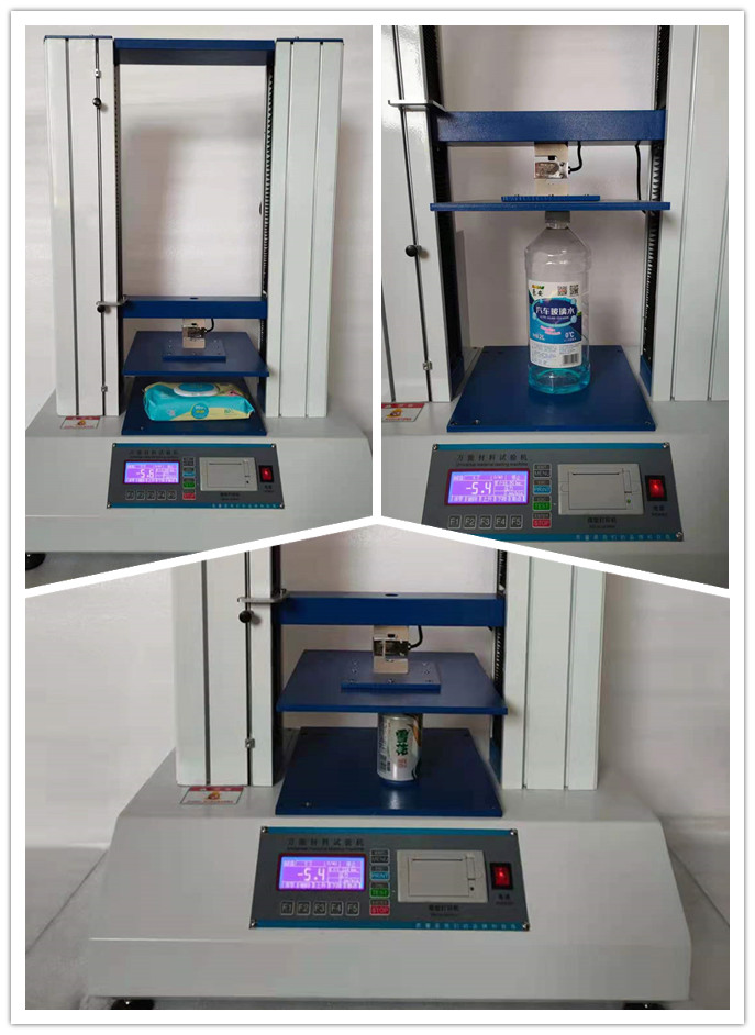 将试样放在两个压板之间,两压板做相对运动,通过位于上压板的力值传感器,采集到试验过程中的力值变化和位移变化,从而计算出试样耐压性能指标。