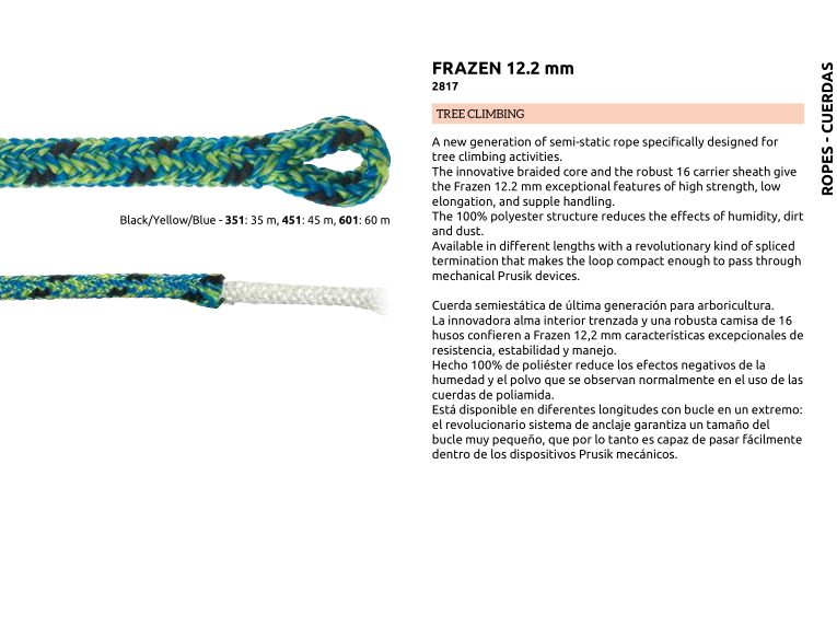 产品名称:意大利 CAMP/坎普 FRAZEN 12.2mm 2817 35米攀树绳