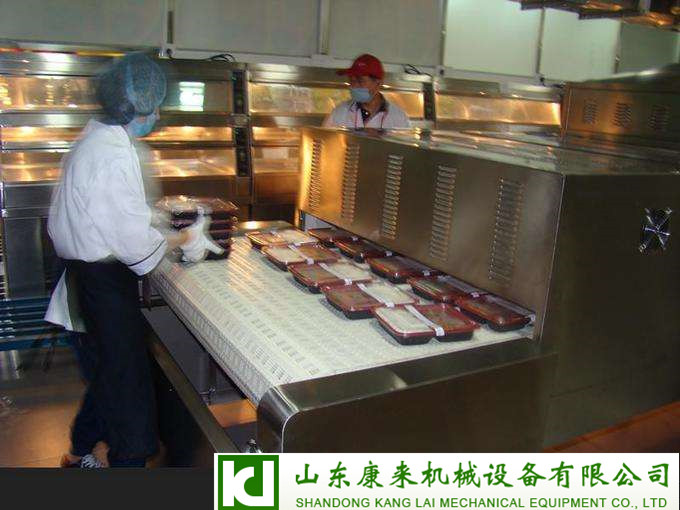 隧道式微波盒饭加热杀菌设备广泛应用于企业,学校、快餐公司、展会等的盒饭配送,其优点是产量高、快速快,短短几分钟左右即可达到温度要求。