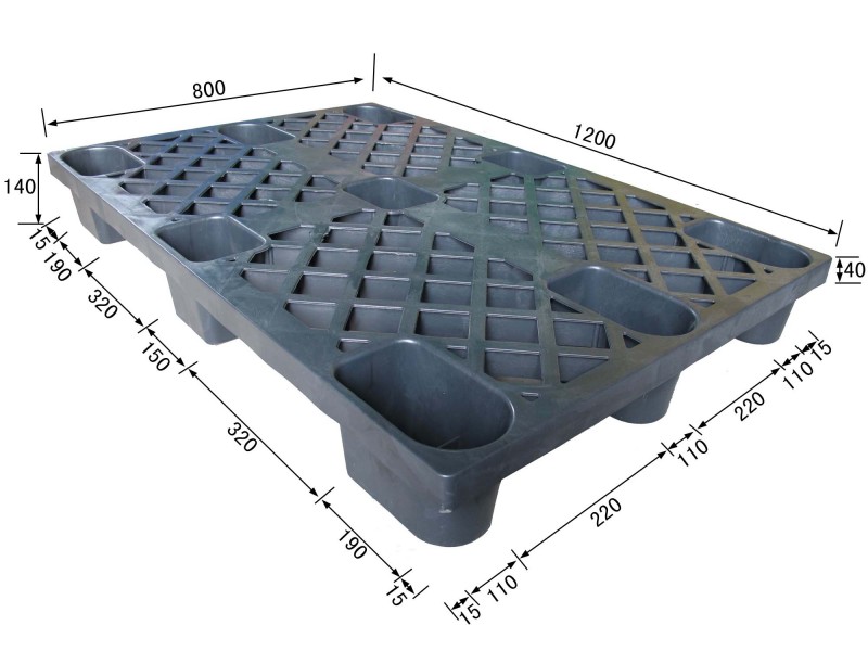 九脚型塑料托盘是针对一般的仓储客户使用的一款塑料制品,主要用于叉车,地牛等搬运工具,但是这款产品承重有限,一般是动载1.5吨,静载2吨,不能上货架,但是可以随时搬运,比较方便。