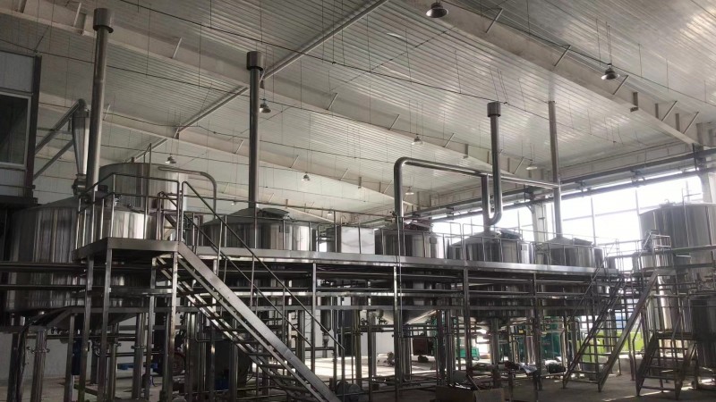 3、发酵系统304不锈钢锥形发酵罐糖化与发酵罐容积比,1:1或者1:2通过各种啤酒的发酵周期精确计算发酵罐的数量包括所有人孔,阀门,压力表,机械压力调节、酒花添加口、洗涤球等配件
