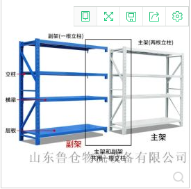 3.仓储货架由立柱,横梁,层板三部分组成,货架连成一排中间的立柱可以共用,主副连接,节约成本;