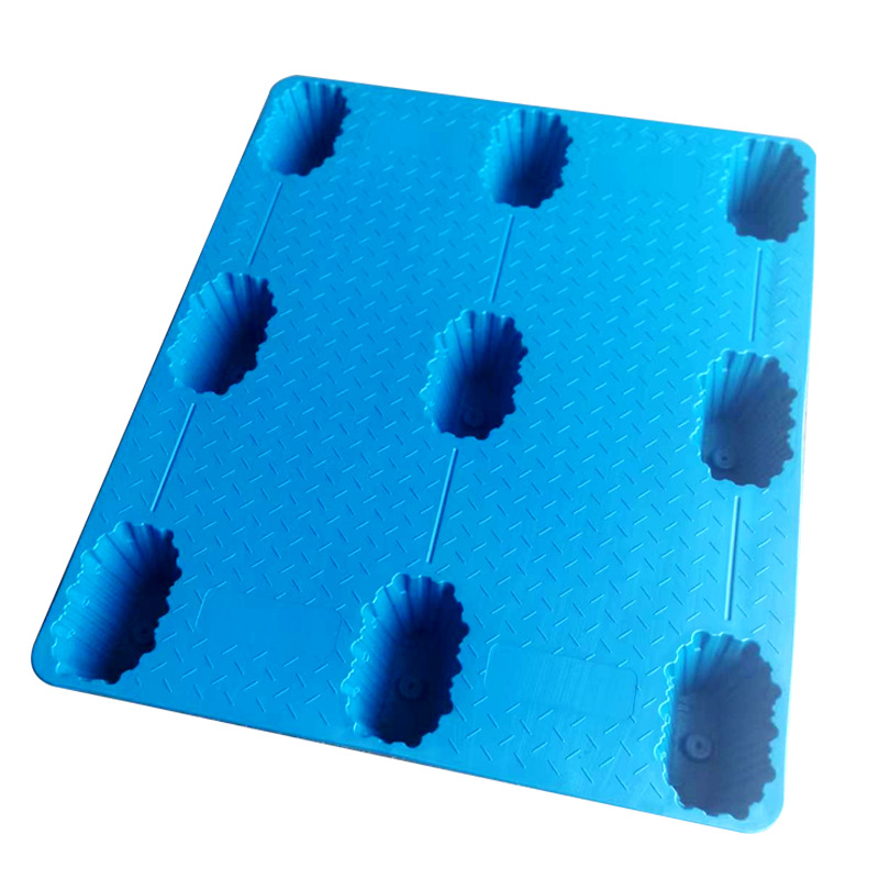 2.塑料托盘正面附有橡胶防滑垫,叉车作业时大大增加了货物的防滑性