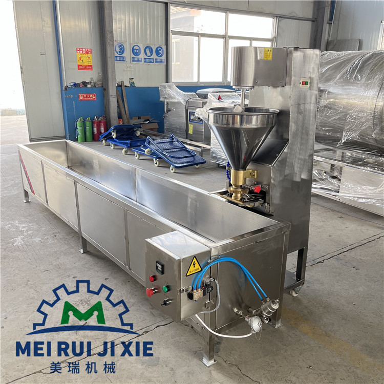 整套小型丸子加工生产线设备 多功能丸子成型机 鱼丸加工设备丸子加工之后还需要定型蒸煮,产量小可以选择用大盆或者是小的加热槽子来实现定型蒸煮,产量大的话需要蒸煮定型流水线,按照产量选择型号,蒸煮定型槽是按照米来的,需要几米采购几米,一段定型,一段预煮,蒸煮完之后进行量贩或者是风干冷却就可以了。