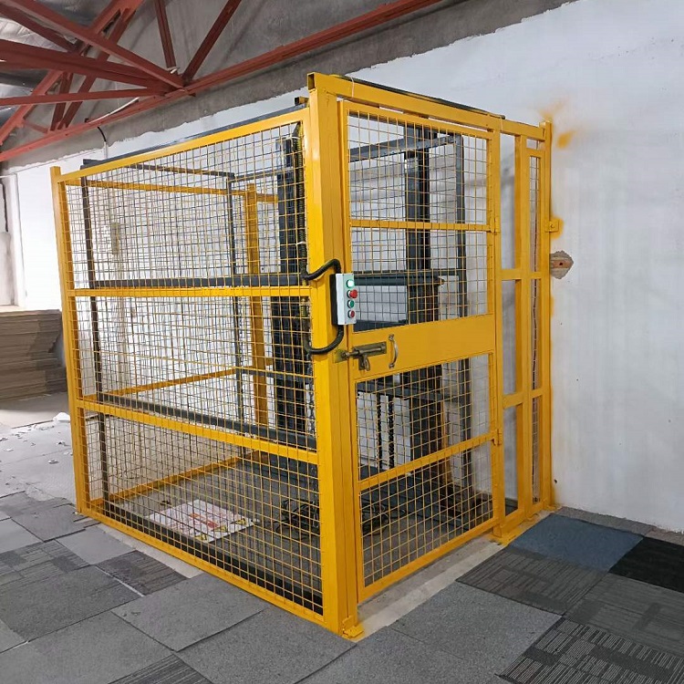 液压货梯利用墙角的剩余空间,贴墙安装,方便快捷,不占用房间的面积,经济适用。