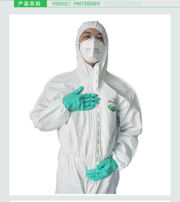n外层为高质多微孔膜, 内层为纺粘聚丙烯无纺布,可提供很好的液体及粉尘防护。