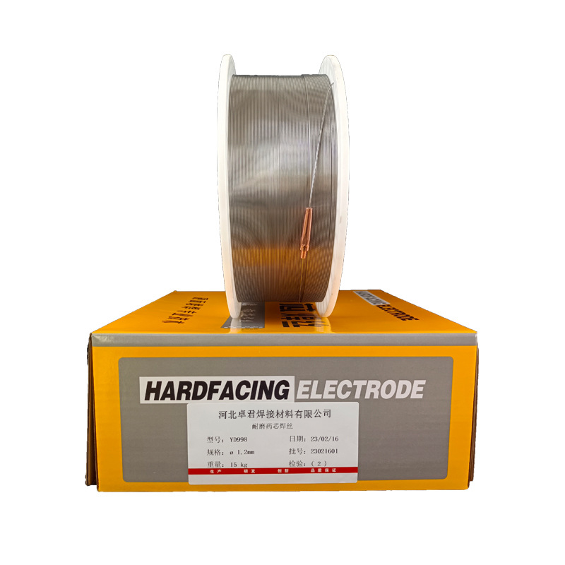 YD212耐磨焊丝是CO2气体保护的普通铬钼型堆焊药芯焊丝,堆焊时电弧稳定、脱渣容易。适用于耐冲击、高度磨损的工件。用于单层或多层堆焊各种受磨损机件表面的修补,如齿轮、挖泥斗、矿山机械等。熔敷金属化学成分(质量分数)(%):C 0.30~0.60;Cr≤5.00;Mo≤4.00。焊丝直径:1.2mm/180A~220A;1.6mm/200A~240A.焊后硬度: HRC≥50焊丝包装: 15公斤/盘注意事项:1.采用直流反接;2.焊接时,CO2气体流量宜为20~25L/min;3.焊丝的干伸长度应控制在15~25mm范围内;4.道间温度推荐保持在300℃左右;5.焊前必须对焊件清除铁锈、油污、水分等杂质。