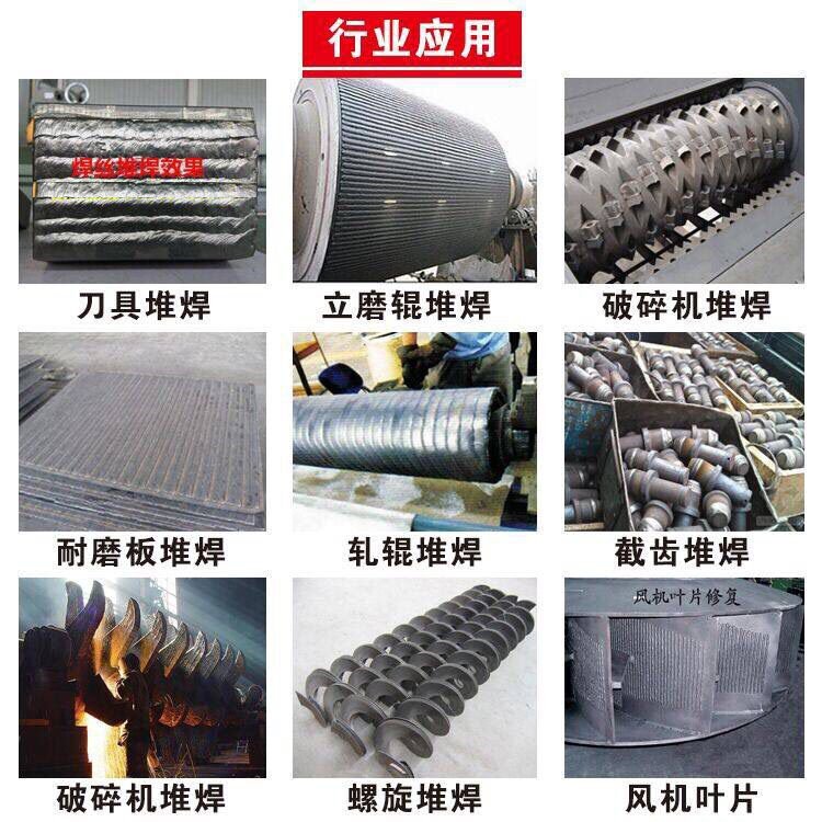 用途:用于堆焊耐岩石强烈磨损的机械零部件,如三牙轮钻头的牙抓背部、鼓风机叶片、强力采煤滚筒、扎糖机轧辊、混凝土搅拌机叶片等。