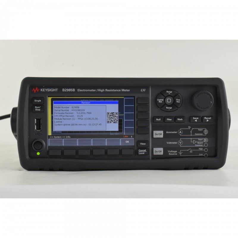 B2985B 静电计/高阻表是一款图形界面静电计,具有 0.01 fA(0.01 x 10-15 A)分辨率,可测量小电流和Z高 10 PΩ(10 x 1015 Ω)的大电阻。 它拥有 4.3 英寸 LCD 彩色显示屏和图形用户界面,不仅可显示数值信息,还可提供趋势图和直方图格式的数据显示。 这些前面板功能让您无需依赖计算机,即可捕获瞬态特性,快速执行统计分析。 现成的设置完整性检查软件选件可以帮助您比较各种线缆连接和夹具布置方式的噪声电平,以便隔离外部噪声源。测量功能