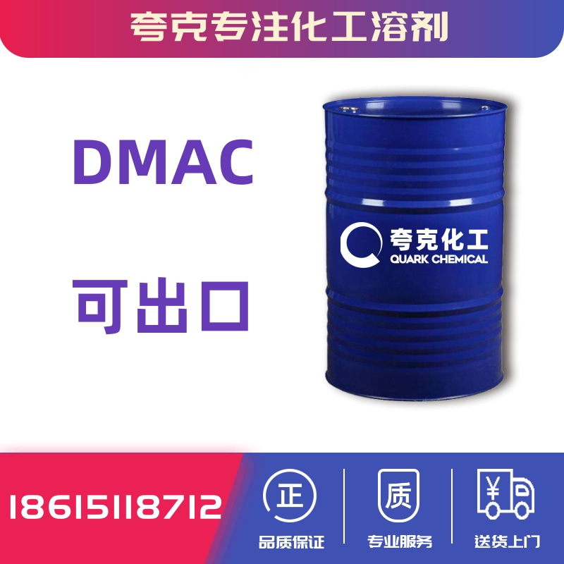 DMAC常用作非质子极性溶剂。无色透明液体,可燃。能与水、醇、醚、酯、苯、三氯甲烷和芳香化合物等有机溶剂任意混合。用于制药物、合成树脂,也用作聚丙烯腈纺丝的溶剂和从碳八馏分分离苯乙烯的萃取蒸馏溶剂等。