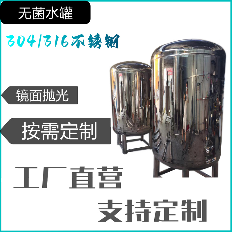 不锈钢无菌水箱采用新工艺技术制造,符合通认GMP卫生标准。并且设计合理,确保水质不受二次污染,科学的水流设计,正常使用时清水和沉淀物自然分层,只需定期打开球形水箱底部排污阀便可排除,无须人工经常清洗。广泛应用于食品,化工等行业的水处工程中,在水处理过程中起到沉淀,缓冲压力,防止水污染,储水等作用。其大小依据水量而定,根据用途不同可选用不锈钢304,316材质。