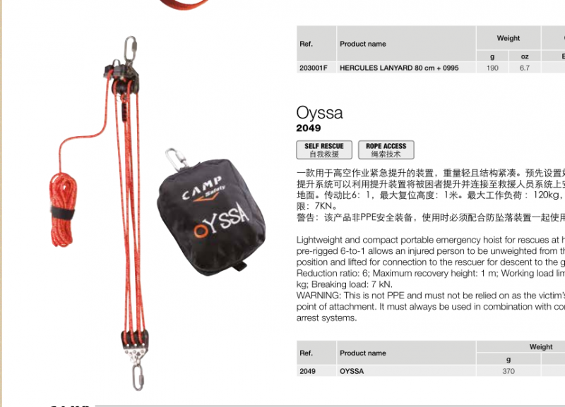 产品名称;遵义 坎普 2049 OYSSA 高空作业时紧急提升及下 提拉套装