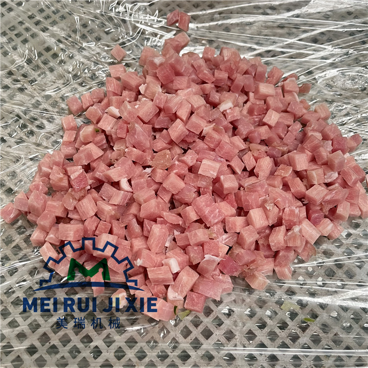 要对肉类进行切丁,那么需要先将肉进行冷冻,在微冻的情况下进行切丁效果是最好的,因为切丁是将肉进行挤压推动,所以鲜肉的弹性太大,这样切出来的丁就不够标准,微冻麻冻的情况下都可以。因为到的原因也不能太硬,零下十几度的是不行的。