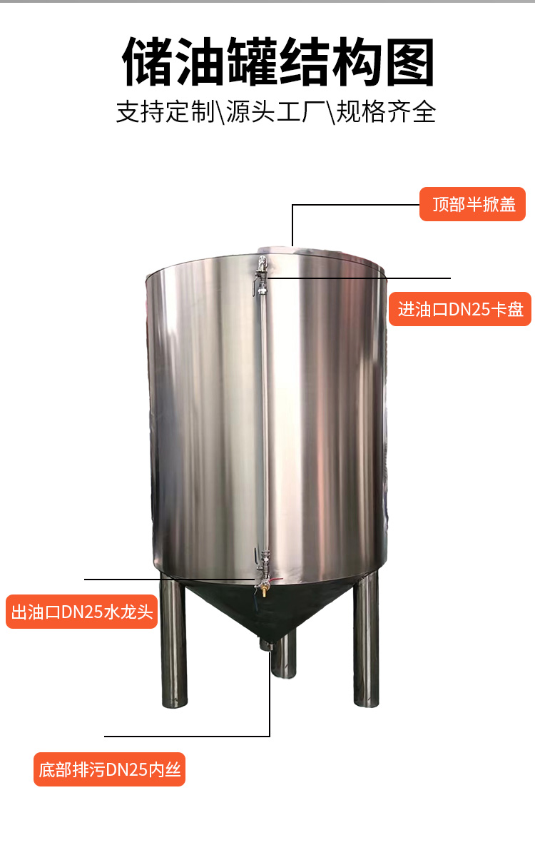 5. 耐高温性:不锈钢储油罐能够耐受高温环境,适用于储存高温液体或气体。