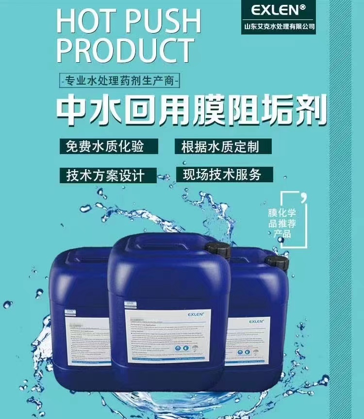 ▲ 主要针对于中水水质,用于控制碳酸钙、硫酸钙及氧化铁沉淀所造成的结垢,可延长系统清洗周期,使膜寿命延长从而降低成本;