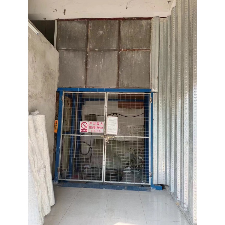液压升降货梯上方无需机房,顶层高度没有限致,可以装卸货物即可。
