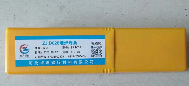 D628是石墨型药皮的抗磨粒磨损高碳、高铬铸铁堆焊焊条。堆焊层为高碳高铬铸铁型弥散碳化物,且堆焊层硬度较高,耐热强性能较好,但堆焊层硬而脆,承受压力与冲击载荷的能力较低,为了不影响堆焊层的抗磨粒磨损性能,尽可能采用较小电流,以利于堆焊层硬相结晶的排列方向。