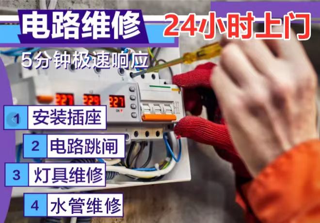 电路维修,马桶维修 照明电路、线路断电、漏电保护器、空气开关等线路故障;维修各种开关、插座、照明灯具、吸顶灯、日光灯、吊灯、景观灯具、格栅灯;电路安装(明暗)、电路维修、电路跳闸维修、照明电路检修、电表安装、闸刀安装、空气开关安装、漏电开关安装、断路器升级、插座没电维修、开关插座更换、增加墙插、室内加灯、橱柜加灯、厨卫加灯、灯泡灯管更换、用电负载检测、灯具安装、灯具维修。