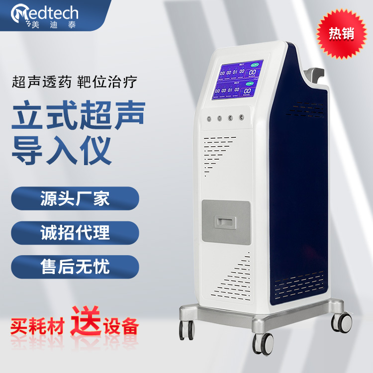 超声药物透入治疗仪将超声波治疗、复合脉冲电治疗等多种功能叠加,集超声技术、电致孔透药、热疗、中医辨证治疗、脉冲电疗作用于一体,可以软化组织,增强渗透,提高代谢,促进血液循环改善局部组织营养、增强酶的活力,对神经系统及全身生理辐射实现神经一体液响应,增强线粒体的有氧氧化能力,提高生物酶的活性,激活神经元,增强机体免疫功能。将与其配套使用的耗材内吸附的药液透过皮肤直接达到病患部位发挥药物作用。此技术给药无需经过肝肾代谢,无全身毒副作用。