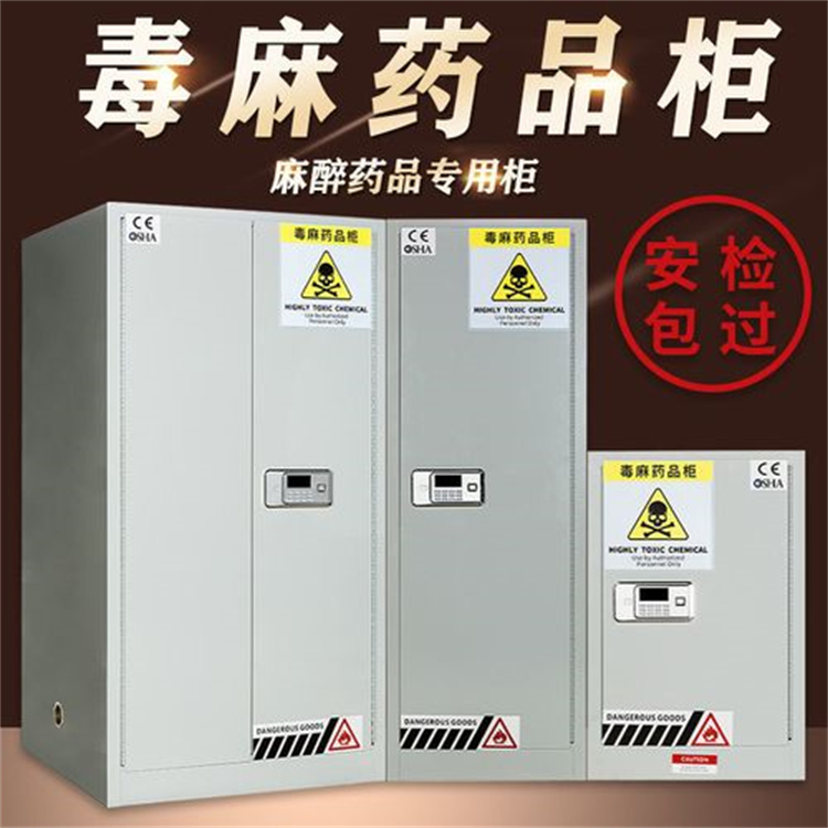 毒麻柜主要是一种用于各类毒麻药品的存放、存储等的柜体。 即使在工作空间较小的地方,小型毒麻柜能成为您的安心之选。 乳白色或浅灰色柜体,有别于易燃与一般性腐蚀性液体的存储柜。