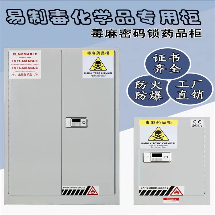 毒麻柜主要是一种用于各类毒麻药品的存放、存储等的柜体。 即使在工作空间较小的地方,小型毒麻柜能成为您的安心之选。 乳白色或浅灰色柜体,有别于易燃与一般性腐蚀性液体的存储柜。