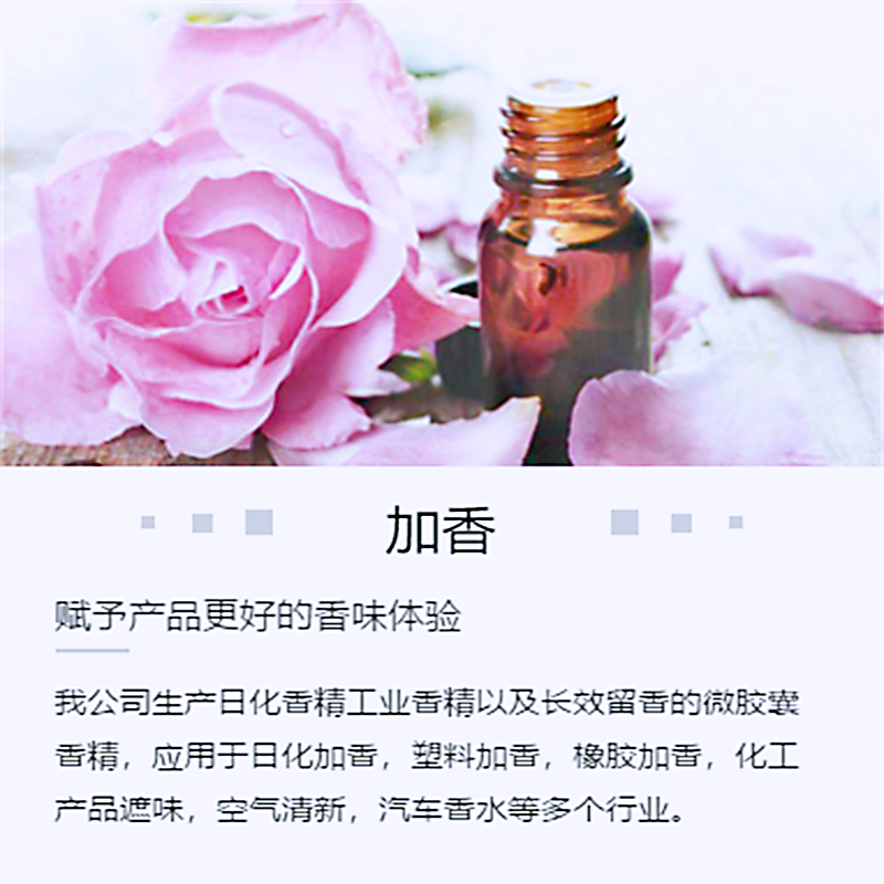 考虑到每个人对于香味的敏感程度和感受不同,我们公司会先提供免费索样服务,你先拿回去打样测试,满意再回来下单。如果你有什么特殊要求我们公司还提供仿香和定制服务,如果有需要欢迎与我联系。