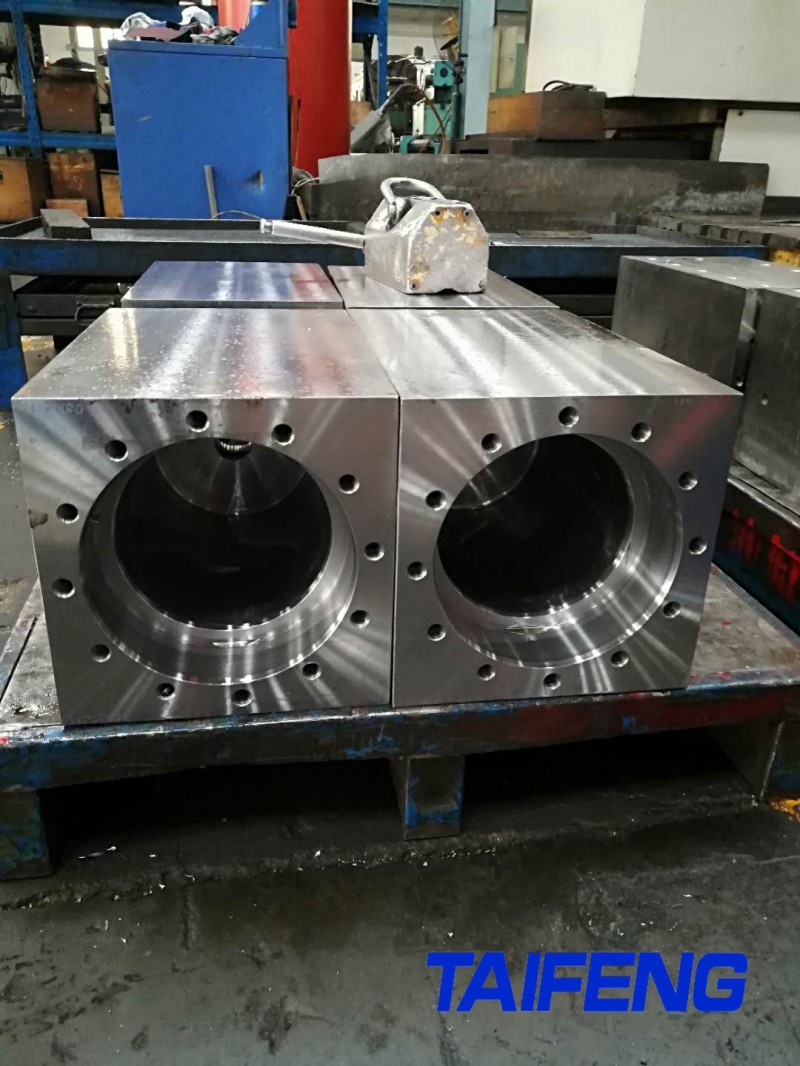 WC67Y-TF系列液压缸内部结构采用涡轮蜗杆传动,带动螺杆轴与调节螺母相对螺旋式轴向移动来调节液压缸工作行程,从而改变折弯机上下磨口闭合高度,满足板料的不同折弯角度工作要求,具有重复调节精度高,回程速度快,密封可靠等特点   。