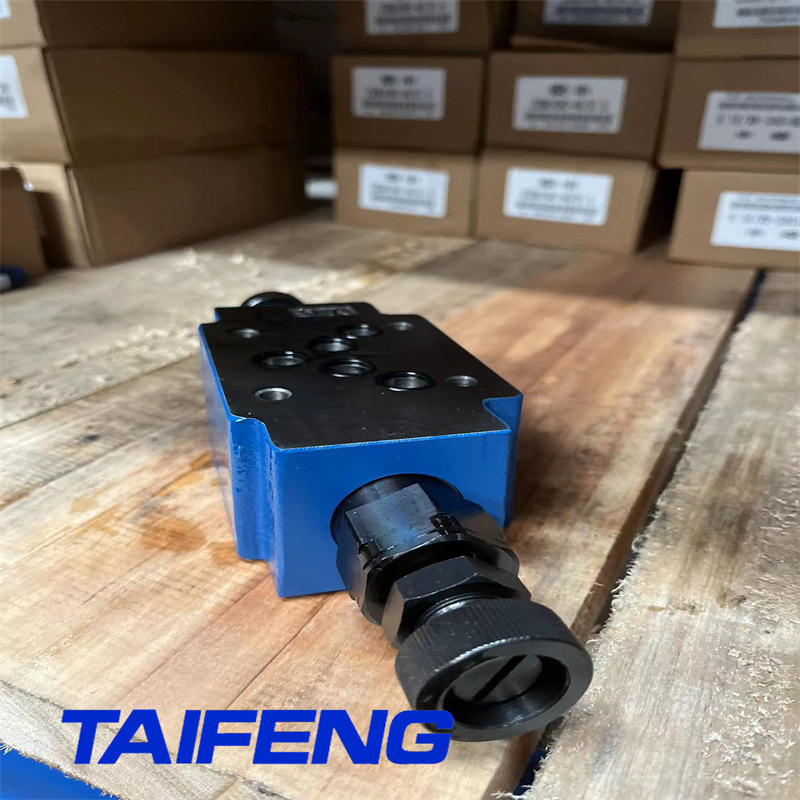 ZDB/Z2DB压力控制阀是叠加板结构的先导式溢流阀,用以限制系统压力。它由阀体和1个或2个插装式压力阀组成。油路A中压力作用在阀芯上;同时经节流孔作用在阀芯的弹簧加载边上,并经节流孔作用在锥阀芯上。若油路A中压力超过弹簧的设定值,则锥阀芯克服弹簧而打开,油液从油路A径节流孔和及孔流到油路T。因而在阀芯上产生一个压降。阀芯向弹簧侧移动而打开,油液外A口流向T口,使系統圧力保持在弹簧的设定值。