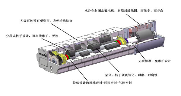 两根转子之间以及转子和泵壳之间没有摩擦,所以不需要水或者油来密封和冷却