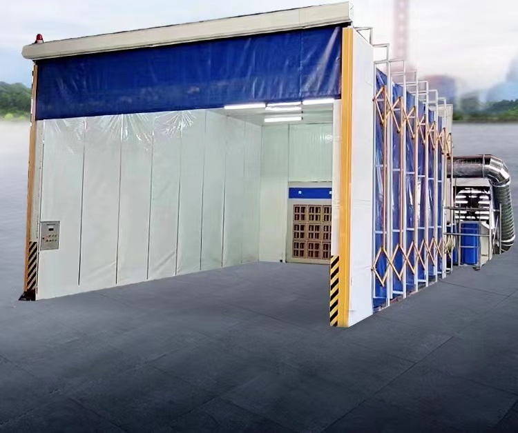 4.移动伸缩式喷漆房整体为框架传动结构,每组框架间均由阻燃PVC布密封连接,安装快捷、外形美观。